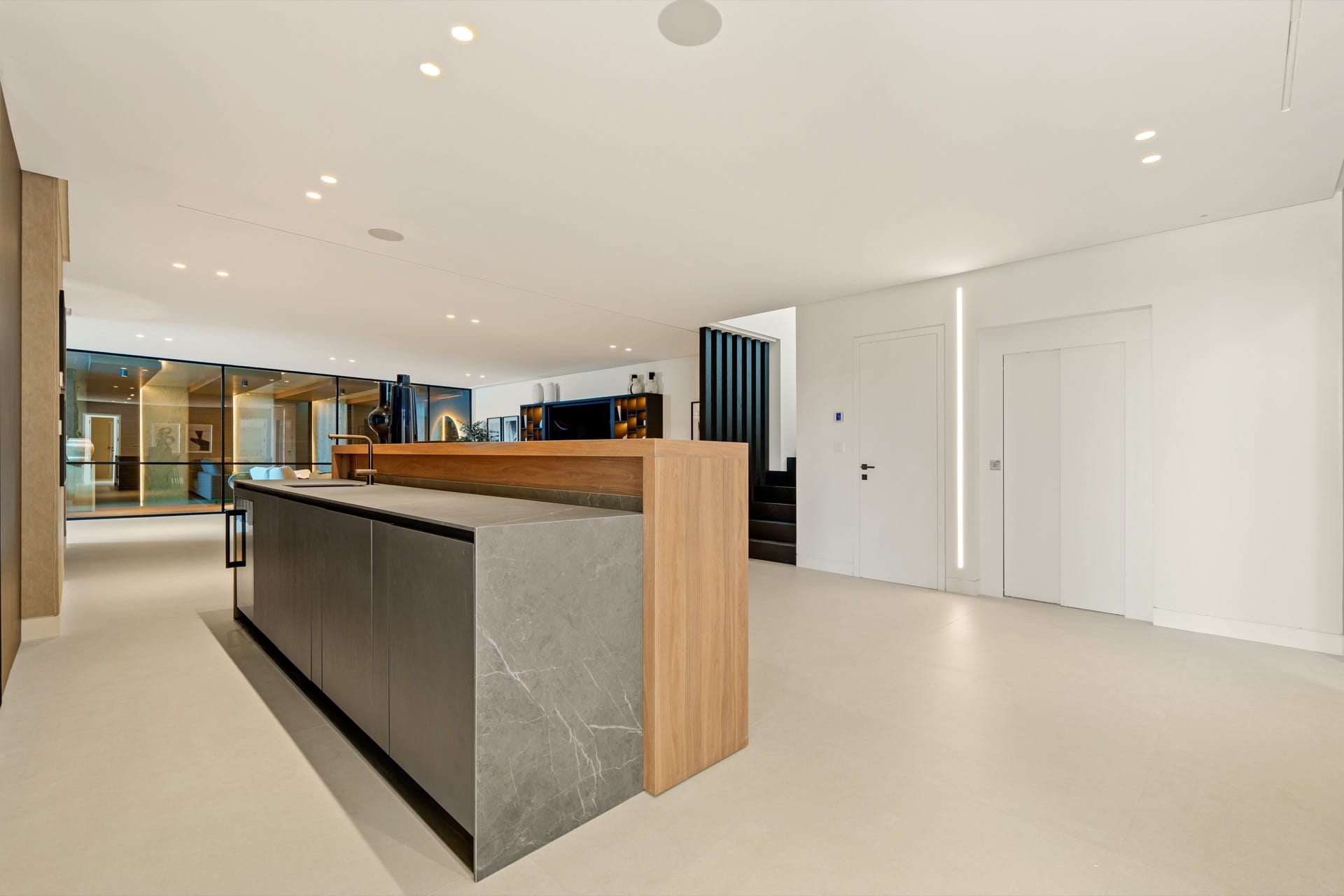 Inside, the layout unfolds around a central open-plan living concept where designer kitchen, dining, and lounge areas flow effortlessly together, forming the heart of the home. Crafted with premium finishes and understated elegance, each space is intended to elevate daily life — whether quietly unwinding or entertaining on a grand scale.